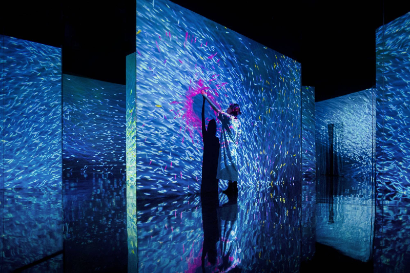 沉浸式互動投影是眾多互動投影應用方式中的一種,在原有的互動投影技術基礎上,配合音響、燈光、煙霧等,打造覆蓋觀眾全視角的絢麗影像,打造出沉浸式的體驗,讓參觀者沉浸在充滿趣味性,夢幻化的體驗中。
